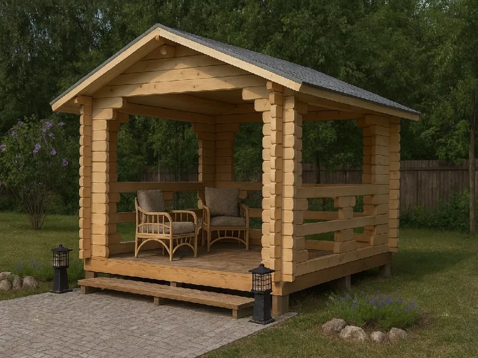 Уже из названия этого проекта дачной беседки всем становится понятно, какую цель преследовали ее разработчики: как можно меньше стен, как можно больше воздуха.